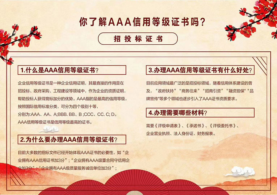 在企業(yè)招商、政府投標、簽約合作等出示的信用資質(zhì)。